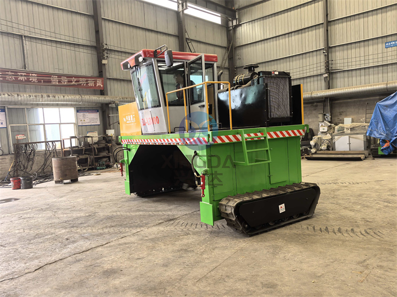 又一车准备发往淮南有机肥履带翻抛机已做好出货准备:履带翻堆机采用履带行走占地少、转弯灵活、可以原地掉头、提高物料堆放场地利用率。机器整体结构合理,整机刚性好、受力平衡、简明、结实、易操控、对场地适用性强,除粗壮的机架,零部件均为标准件,使用维护方便。行驶中整车骑跨在预先堆置的长条形肥基上,由机架下挂装的旋转刀轴对肥基原料实施翻拌、蓬松、移堆,车过之后成新的条形垛堆。在翻抛过程中,物料被高速旋转的滚筒带起并向后移动一定的距离所以在翻抛过程中,翻抛机可对物料打散、粉碎,并带走部分水分。