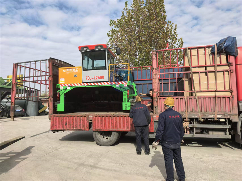 刚打造完成的2.5米宽的有机肥履带翻抛设备准备装车:履带翻堆机不仅提高了堆肥生产的效率,还减少了人工劳动强度。其操作简便,只需一名操作员即可完成复杂的翻堆工作。此外,该设备还可以根据需要调整翻堆深度和速度,以适应不同类型的堆肥材料和工艺要求。在环保方面,履带翻堆机有助于减少有害气体排放,提高堆肥质量,为农业生产提供有机肥料。