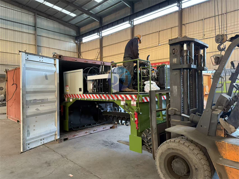 一台准备出口的有机肥设备液压履带覆膜翻抛一体机正在装车:液压履带覆膜翻抛一体机是通过旋转刀片或螺旋叶片将堆肥物料翻动、搅拌,使空气均匀渗透到物料内部,促进好氧微生物的活动,加快有机质的转化。翻抛机搅拌系统,能够将物料翻动均匀,确保发酵过程中的氧气供应,防止厌氧发酵的发生。此外,该设备还具有操作简便、维护方便的特点,适用于各种规模的有机肥生产厂。此外,这种设备还具有自动化程度高、能耗低等优点,广泛应用于农业、园艺等领域,为土壤改良和作物生长提供优的有机肥料。