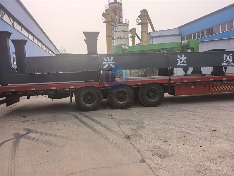 直发辽宁的一车大型有机肥生产线翻抛设备轮盘翻抛机正在进行装车:有机肥设备厂家打造的轮盘翻抛机由主梁行走装置、主梁、翻抛行走装置、翻抛盘、控制系统组合而成。