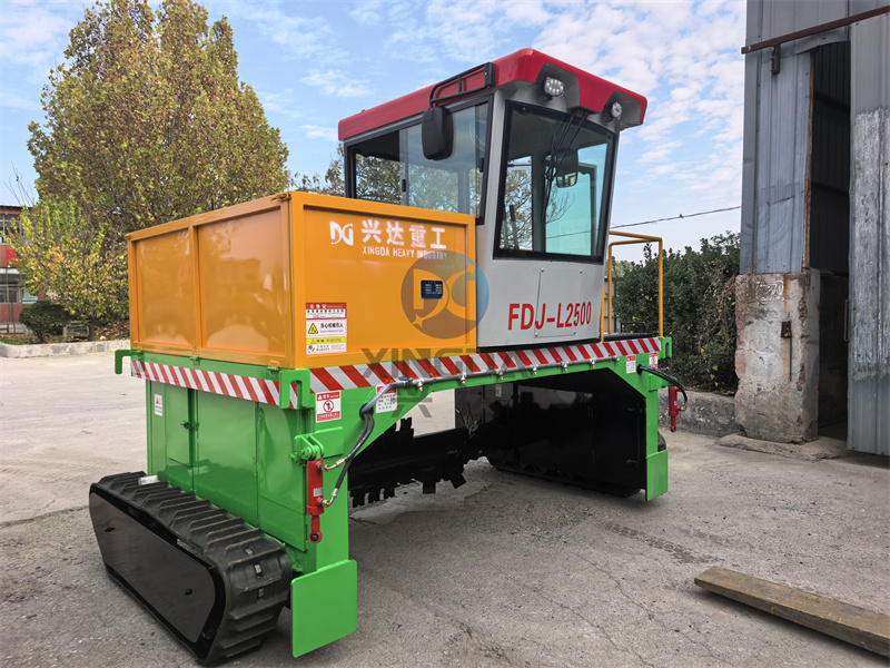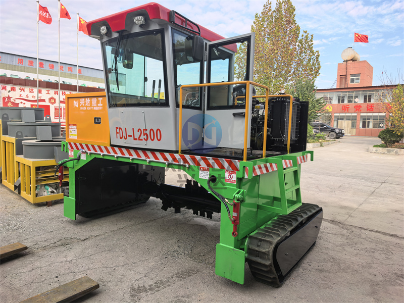 刚打造完成的2.5米宽的有机肥履带翻抛设备准备装车:履带翻堆机不仅提高了堆肥生产的效率,还减少了人工劳动强度。其操作简便,只需一名操作员即可完成复杂的翻堆工作。此外,该设备还可以根据需要调整翻堆深度和速度,以适应不同类型的堆肥材料和工艺要求。在环保方面,履带翻堆机有助于减少有害气体排放,提高堆肥质量,为农业生产提供有机肥料。