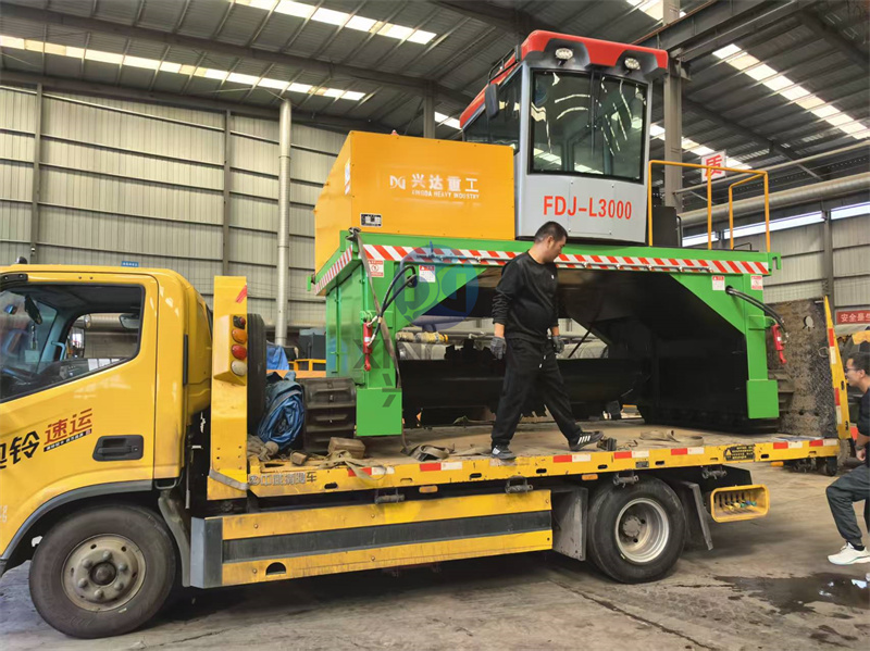 运城客户又定购一台有机肥履带翻抛机,准备开始装车:履带翻堆机通常由动力系统、传动装置、翻抛机构和控制系统组成。动力系统一般采用柴油发动机或电动机,提供足够的动力以驱动履带和翻抛机构工作。传动装置则负责将动力传递到各个工作部件,确保设备运行平稳可靠。翻抛机构是核心部分,通过旋转的刀片或耙齿将有机物料翻动,使其充分接触空气,加速发酵过程。控制系统则可以根据操作需求调整设备的工作参数,如翻抛速度和深度等。