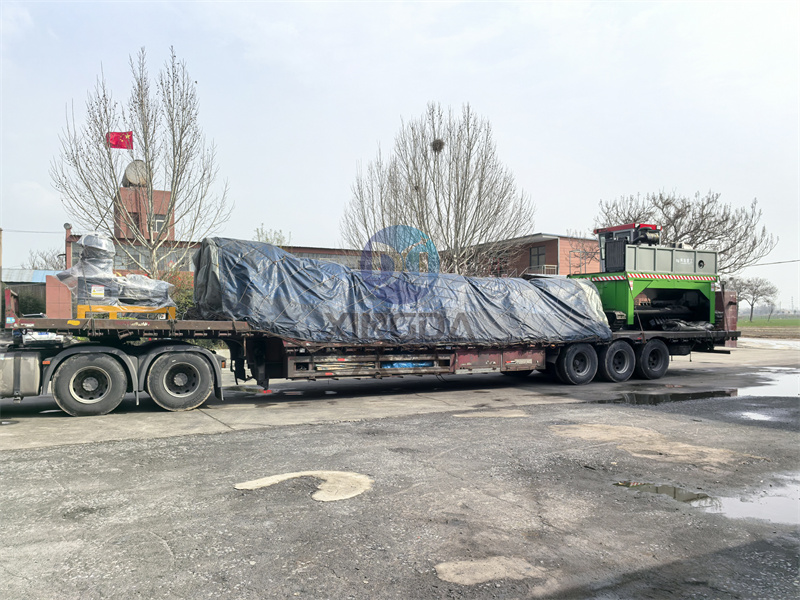 3、需用铲车将陈化后有机肥铲入皮带给料机内,再将物料均匀输送至粉碎机内。
